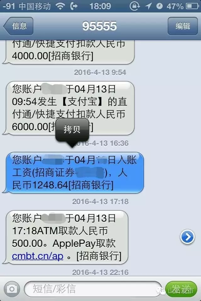 “曹老师您好,请关注下银河证券的情况。青岛地区去年2015年的年终奖金要扣发15%作为2016年营销费用。”