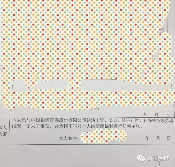 银河证券员工提供了离职协议。