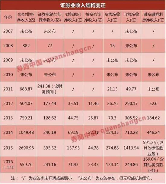 一个奇怪的现象是,2016年上半年,尽管成交量骤降、估值下挫、佣金率只剩下2007年的零头,但券商仍取得1570.79亿元的收入和625亿元的净利润,这是历史上同比第二好的收入和第三好的净利润。