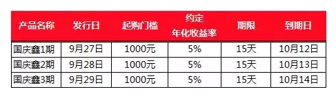 国庆假日理财宝系列产品