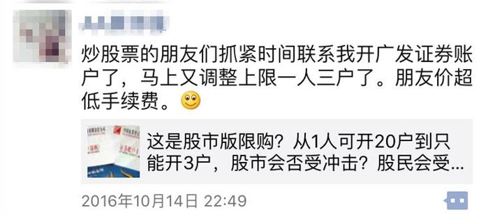 首先,每个投资者开户数量已被限制在3个以内,数量空间已被限死。其次,投资者不会傻到将账户名额一口气全部用完。比如已经开了两个证券账户,如再为亲朋好友帮忙,或者贪图佣金低又在互联网券商开设一个证券账户,之后想要再开证券账户就得销户。
