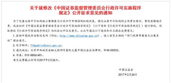 2017年2月24日,证监会新闻发言人张晓军在介绍修改后的《中国证券监督管理委员会行政许可实施程序规定》(以下简称《行政许可实施程序规定》)时表示,强化证券中介机构的主体责任意识,督促其勤勉尽责,进一步发挥好核查把关作用,同时也把握好与“持续服务”之间的平衡关系,注意恰当处理涉案证券中介机构与非涉案行政许可申请人、涉嫌违法违规业务与其他业务、涉案证券中介机构中机构责任与个人责任等几组关系。