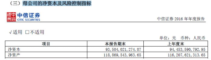 中信证券公布的净资本数据如下: