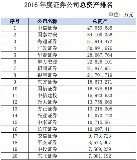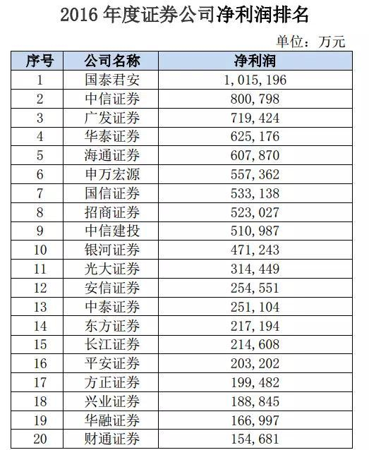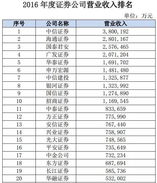 中国证券业协会最新公布了2016年度证券公司经营业绩指标排名情况,这是一年一度证券全行业多项指标的最权威揭榜时刻。
