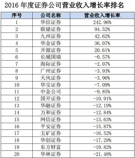 对于证券公司而言,经历了2015年的好光景,2016年全行业经营指标下滑已是意料之中。不过即便在此背景下,依然有证券公司实现了营业收入及净利润的同比增长。