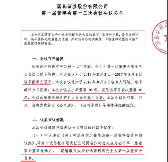 值得注意的是,张树忠的董事席位尚待8月25日国都证券第一次临时股东大会审议通过。