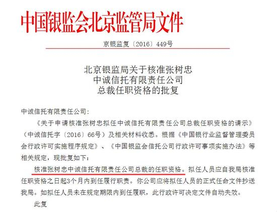 张树忠是国都证券第一大股东中诚信托党委副书记、总裁、董事。去年8月11日,北京银监局批复核准张树忠中诚信托总裁任职资格,原总裁牛成立(现中诚信托董事长)不再担任总裁职务。