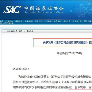 同时,辛治运个人认为,证券业协会出台的是操作指引,更多起到引导作用,主要是行动起来,在落实时间、合规专员人数等方面,监管部门会实事求是,充分考虑实际操作层面的需求的。