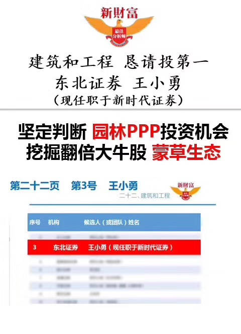 此前任职东北证券的王小勇,专注建筑和工程行业,坚定判断园林PPP投资机会,挖掘到了翻倍大牛股蒙草生态。
