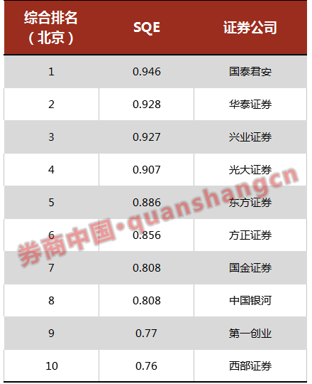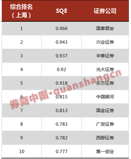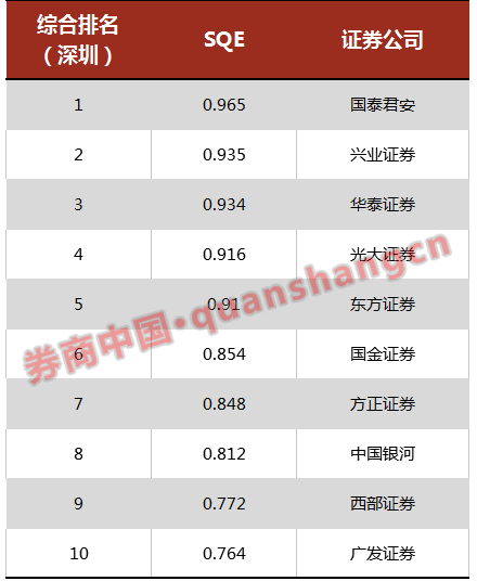 10月份的SQE综合指数显示,APP行情刷新速度排名前十的券商为: