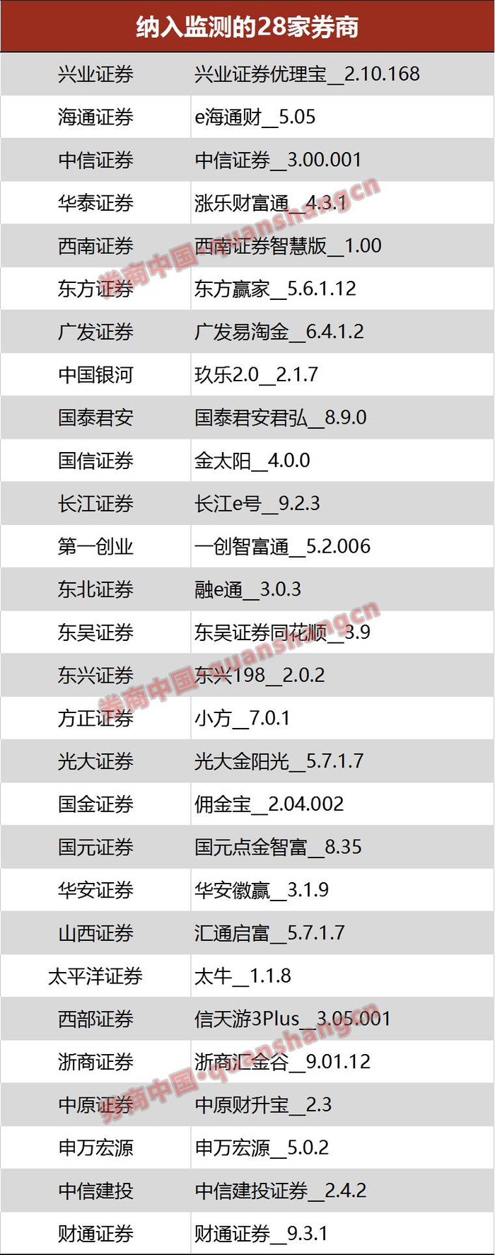 第二期的监测样本中加入了近期新上市的财通证券APP,另外,在港股上市的中信建投证券也纳入本期监测样本中。