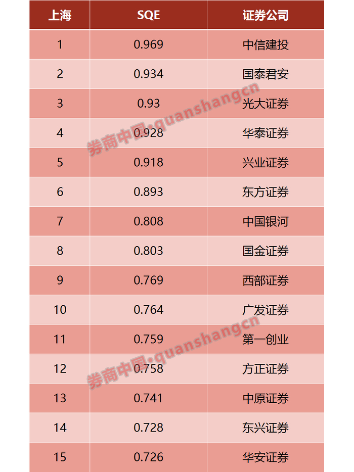 11月份上海地区SQE指数TOP15