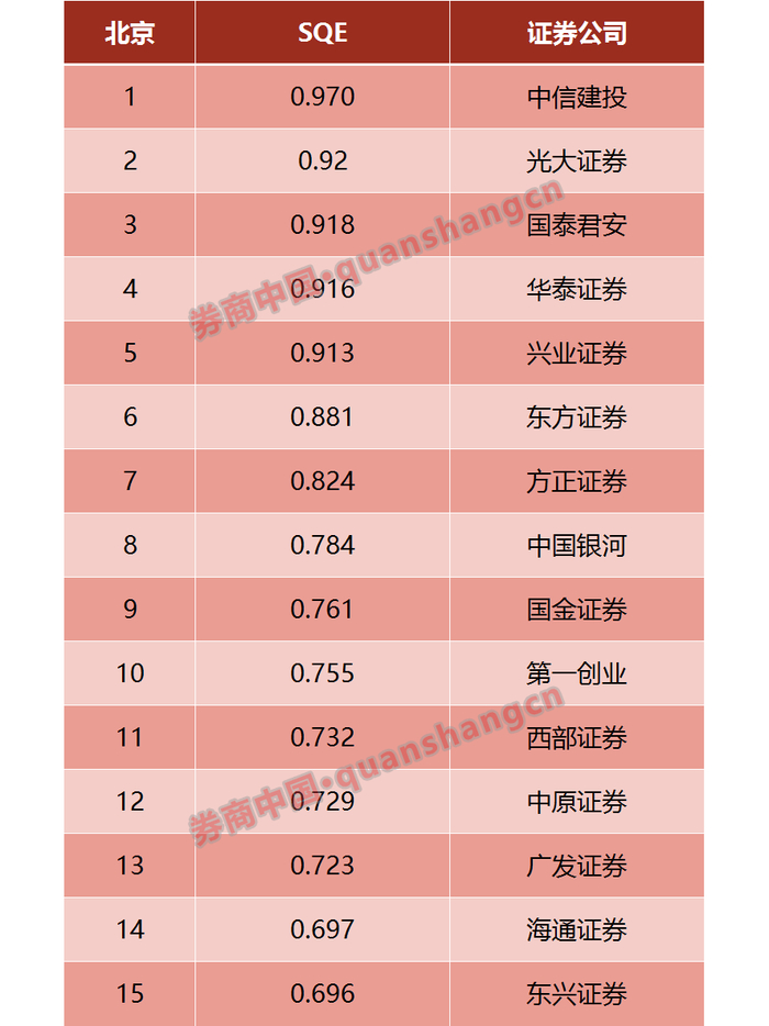 11月份北京地区SQE指数TOP15