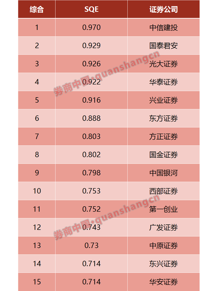 SQE指数综合排名