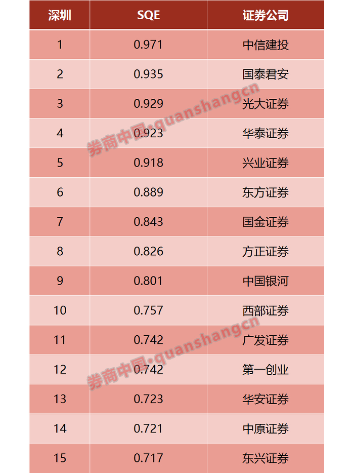 11月份深圳地区SQE指数TOP15