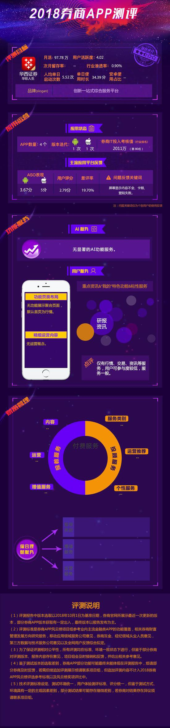 本期评测目标为华西证券APP华彩人生。体验评测中,华彩人生整体服务提升空间很大,研报资讯表现相对突出。