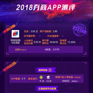 新浪财经讯 为了更好地为广大投资者展示各家券商APP应用的用户服务优劣、功能完备情况等,帮助用户精准辨别投资所属,2018券商APP风云榜项目组将对逾80家券商APP进行按需测评。今年测评小组将基础数据(APP用户数据来源:易观千帆)、应用状态、运营服务、财富管理角度进行测评。