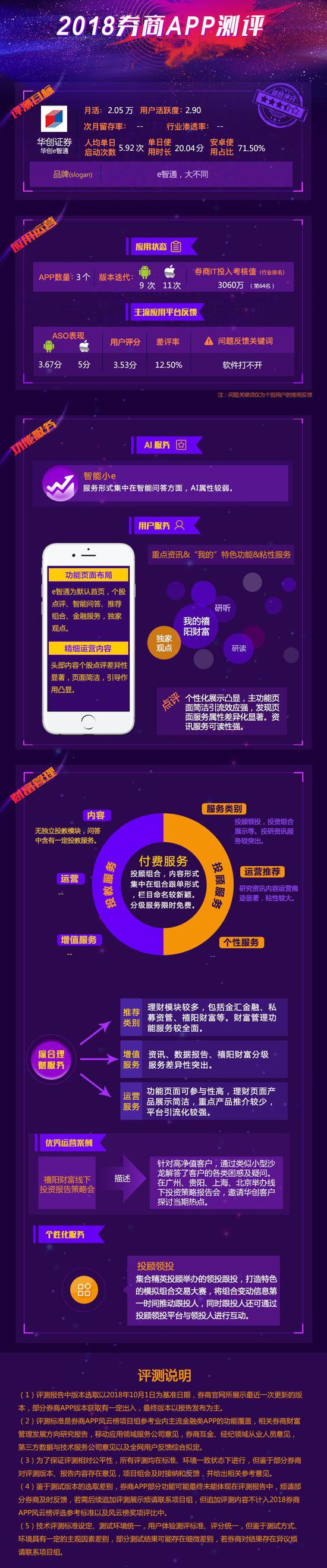 本期评测目标为华创证券APP华创e智通。体验评测中,华创e智通智能选股AI属性较弱,无独立投教服务,投顾服务表现一般。理财方面,理财模块较多,服务差异性突出。