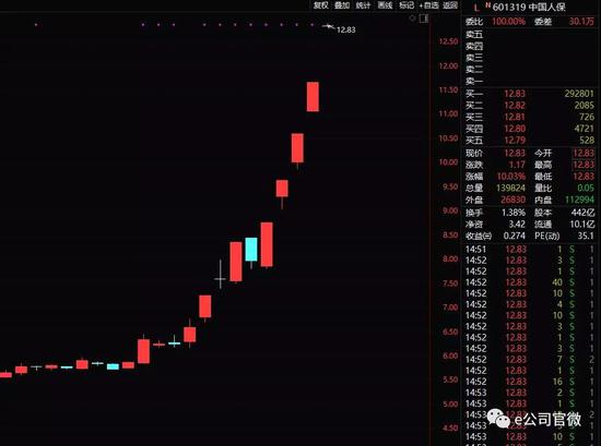 3月7日,中国人保(601319)一字涨停,近9个交易日已收获7个涨停,现价12.83元/股。