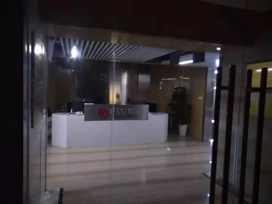 7月13日下午,记者来到位于上海南京西路的上海仟和亿教育培训有限公司所在地。一出电梯,来到仟和亿教育培训有限公司所在办公楼的楼层,只见楼层一片漆黑,而仟和亿教育公司的玻璃大门还透着较为灰暗的光亮。