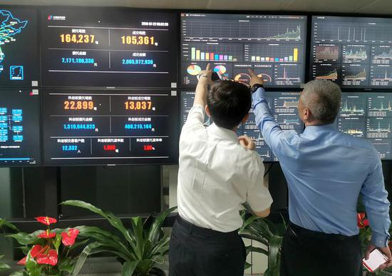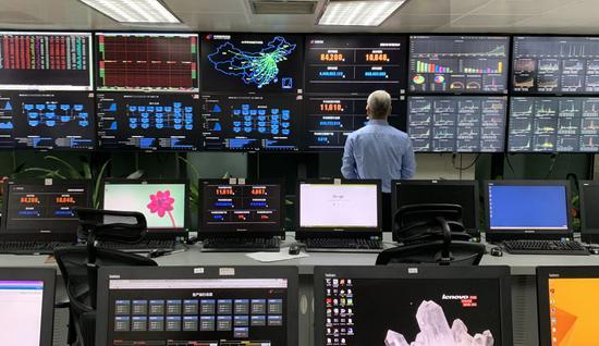 此时,罗黎明面前有12面屏幕组成的超级大屏,上面密密麻麻布满各种表格、图形,他正和公司信息技术部负责人唐沛来一起紧盯屏幕,不时交流几句。