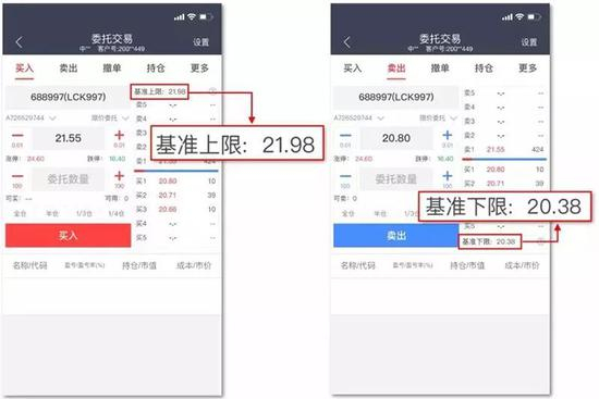 不过,在众多券商APP中,这道算术题已经不用自己计算了。中国银河证券在手机APP中推出了“科创板下单小精灵”,在交易页面,用户可以看到参考基准价、参考报价上限、参考报价下限。