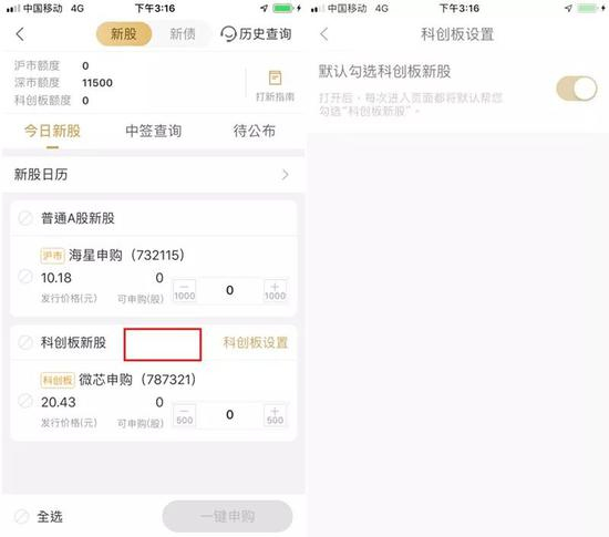 比较特别的是,安信手机证券APP的新股申购菜单中增加了一个选项“是否需要默认勾选科创板新股”。