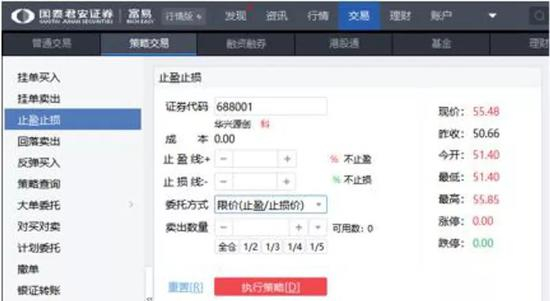 使用场景:投资者小王持有某科创板标的,计划盈利20%就落袋为安。这时候,小王就可以用止盈止损策略,提前设定止盈线为成本价上方20%,当股价达到止盈价后一键卖出。
