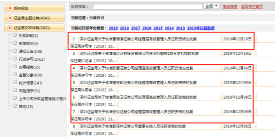 行家梳理深圳证监局行政许可信息发现,本周已有7条更新,其中5条均是对华泰联合经理层高级管理人员任职资格的批复,而批复日期均为12月5日。