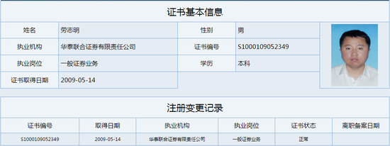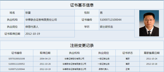 姓名:华泰联合证券有限责任公司