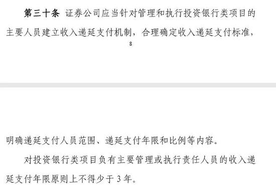 例如,根据中国证监会的政策要求,证券公司对投资银行项目员工建立收入递延支付机制,主要管理人员,递延支付年限原则上不得少于3年。