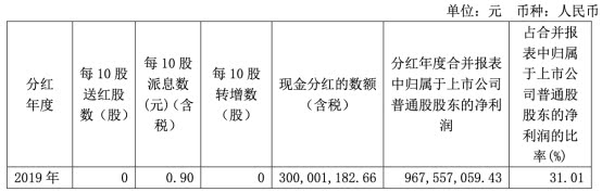 浙商证券2019年度利润分配预案为:每10股派发现金红利人民币0.90元(含税),拟分配现金分红的数额(含税)为3.00亿元,占2019年度合并报表中归属于上市公司普通股股东的净利润的比率为31.01%。