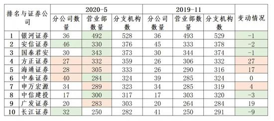 最近一年,共有34家券商增设了分公司,10家券商撤销了分公司。