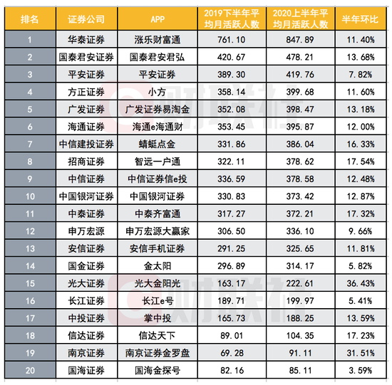 上半年APP活跃度排名出炉,华泰、国君、平安领跑