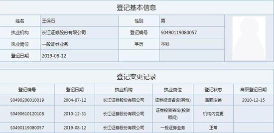 公开信息显示,王保石现年52岁,本科学历。此前曾任平安保险办公室主任,长江证券佛山营业部行政经理兼市场部经理、福州东大路营业部负责人、惠州下埔路营业部总经理、广州天河北路营业部总经理、广东分公司总经理。2019年2月至2020年6月,任长江证券广东分公司华南总支党总书记。