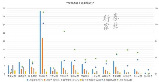 TOP20券商上海地区业绩,券业行家制图