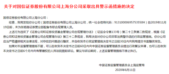 首先来看看这份对国信证券上海分公司出具的警示函——