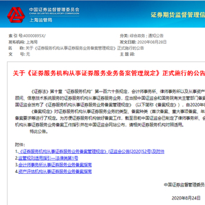 7月24日,证监会正式发布《证券服务机构从事证券服务业务备案管理规定》,定于8月24日起实施。