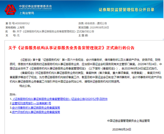 8月28日,上海证监局发文确认《备案规定》8月24日起正式实施。