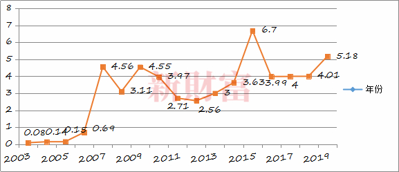 图1:2003-2019年基金分仓佣金走势图(亿元)