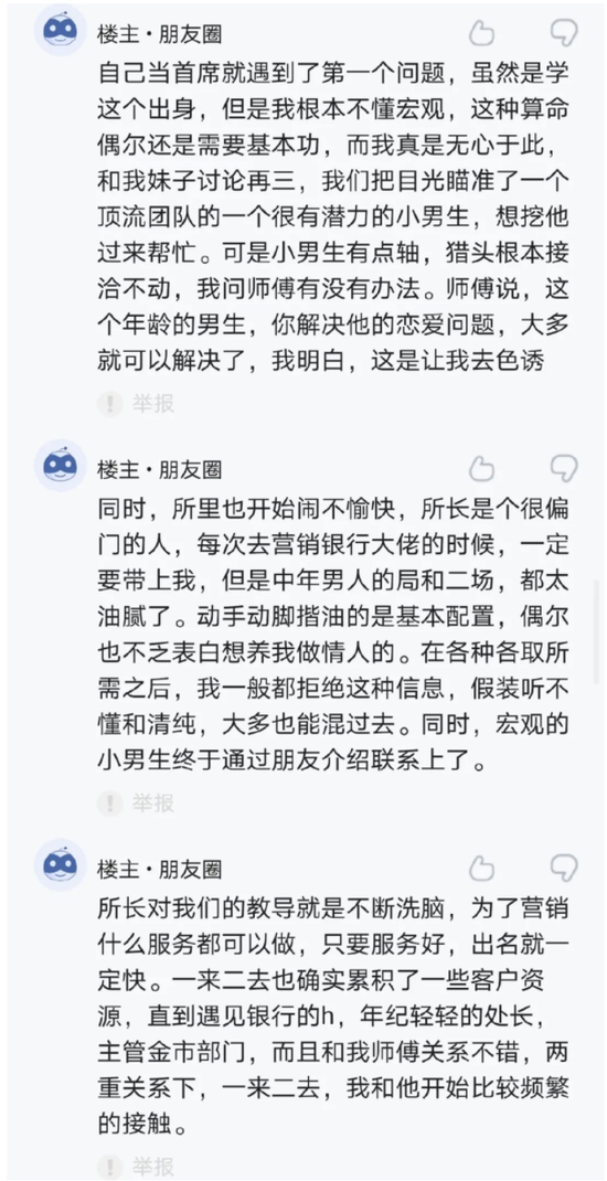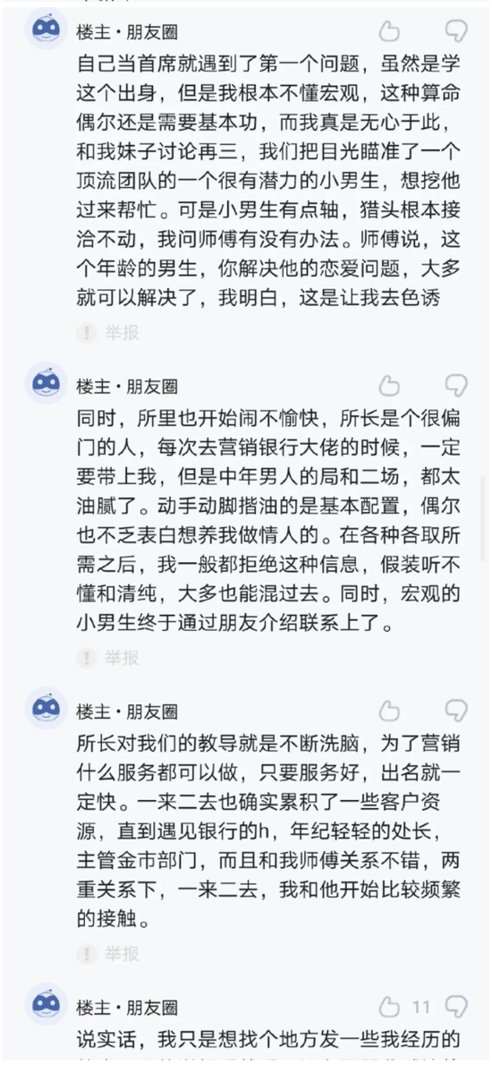 一个固收女首席的瓜,来源是mifeng,原贴已经被删了。