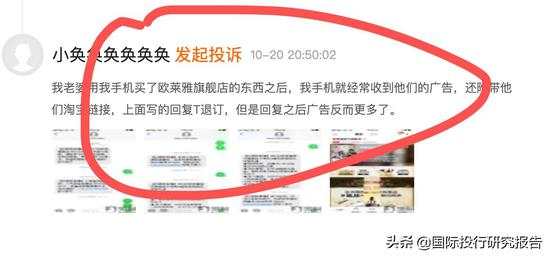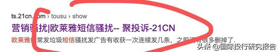 网上关于欧莱雅垃圾短信的投诉不少