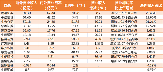 特点一:海通、中信、中金表现抢眼 大多数内资券商海外业务收入同比增长
