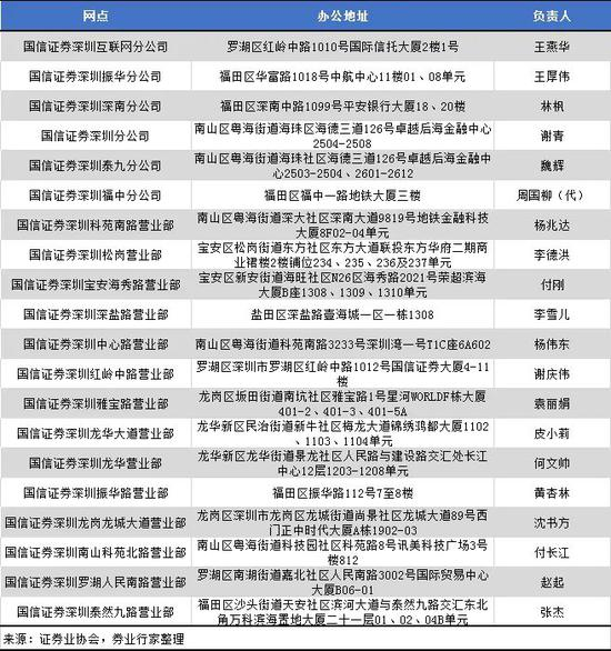协会信息显示,国信证券在上海有两家分公司和8家营业部,合计10家网点。