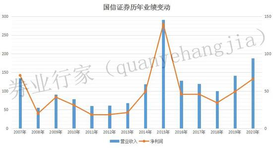在2014-2015年,协会以非合并口径统计,国信证券的营业收入分列第5位和第3位,净利润均列第4位。