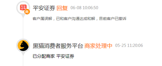 就在今天(6月8日)上午,平安证券回应了前述投诉,称“客户属误解,已和客户沟通达成和解,目前客户已撤诉”。