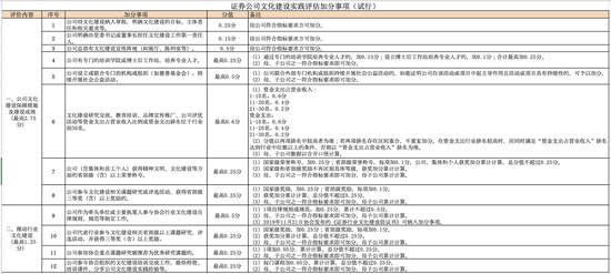 尤为值得关注的是加分项和扣分项。加分项包括“公司文化建设保障措施及建设成效”、“推动行业文化建设”两大类、12个指标,总分值高达4分。