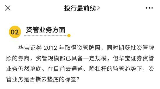 在资管业务方面,原文称华宝证券自2012年取得资管牌照以来,“资管业务仍然垫底”。