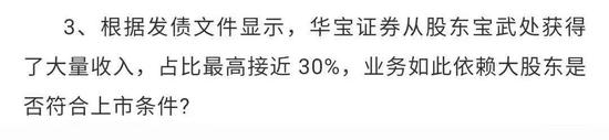 原文最后一项质疑是,华宝证券“从股东宝武处获得大量收入,占比最高接近30%”。
