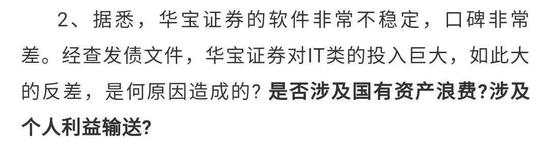 原文的第二点质疑是,华宝证券的“软件非常不稳定,口碑非常差”,与对IT类的投入反差巨大。